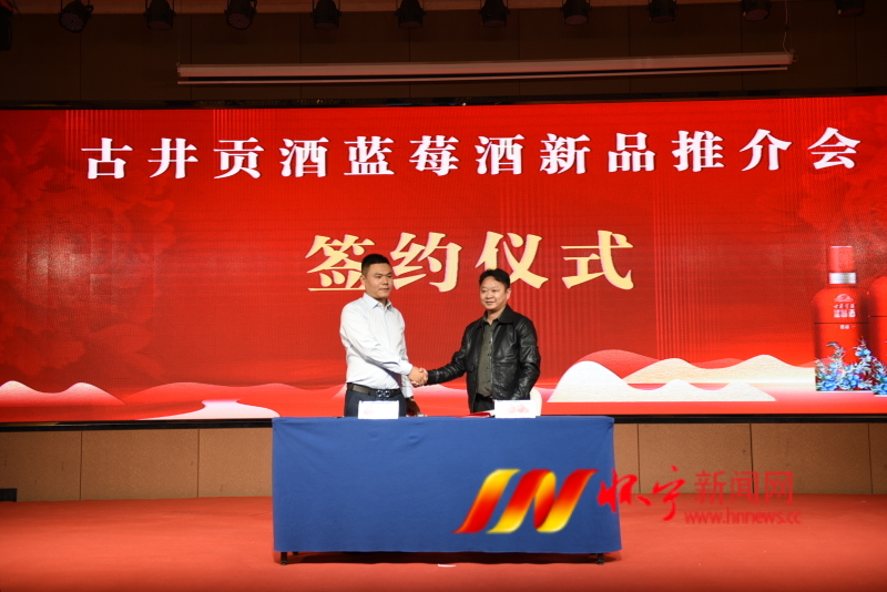 推介會上,古井集團的企業代表介紹了藍莓酒新品的研發過程,安徽獨秀山藍莓科技開發有限公司代表介紹了新品的產品特點,藍莓酒產業鏈企業還進行了合作簽約儀式。儀式結束后,與會嘉賓共同登臺見證藍莓酒新品發布。