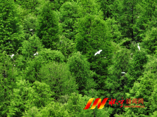 位于雷埠鄉金雞嶺水庫的2000多棵水杉青蔥翠綠,夏日里的“秘境森林”引得眾多鷺鳥前來打卡。