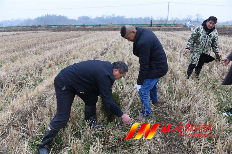 正月初十以來,在涼亭鄉(xiāng)雙湖村的婦建大畈里,挖掘機正在田間挖溝筑埂,工人們正在鋪設(shè)水草,為準備實施“稻蝦共作”的田塊做好基礎(chǔ)性工作。“我們圍的田埂高度大概有一米,控制田里水50-80公分深,在種上相應(yīng)的草,方便蝦子以后脫殼。”涼亭鄉(xiāng)雙湖村“稻蝦共作”養(yǎng)殖戶昝建國向記者介紹道。