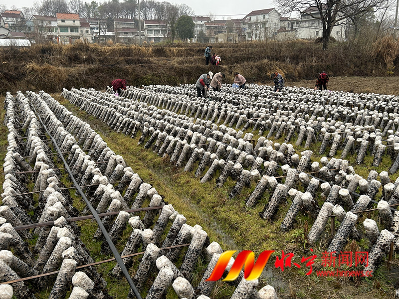 在江鎮鎮于山村木耳基地里,休眠了一整個冬季的黑木耳快速生長,迎來第二輪采摘季。工人們來回穿梭于一排排菌棒之間,采摘新鮮木耳,即采即賣。