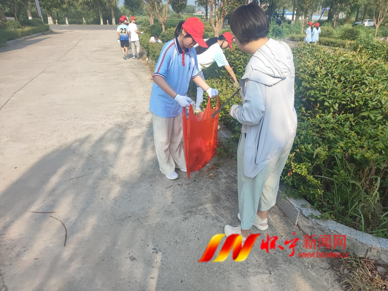 本網(wǎng)訊 在藍(lán)天白云和小橋流水的映襯下,一群活力四射的初中生齊聚三橋鎮(zhèn)皖埠河畔,他們手持垃圾夾、白色手套和垃圾袋,正有序地對(duì)皖埠河兩岸進(jìn)行清潔。