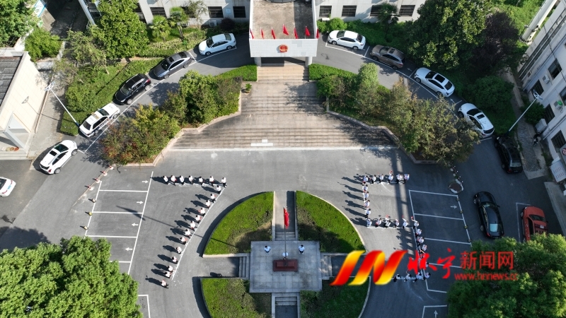 在月山鎮(zhèn)政府大院內(nèi),黨員干部群眾齊聚一堂,以旗桿為中心,創(chuàng)意性地排成了象征新中國75周年華誕的“75”字樣,大家凝視著迎風(fēng)飄揚的五星紅旗,用激昂的歌聲唱出對祖國的無限忠誠和熱愛。“五星紅旗迎風(fēng)飄揚,勝利歌聲多么響亮;歌唱我們親愛的祖國,從今走向繁榮富強........”