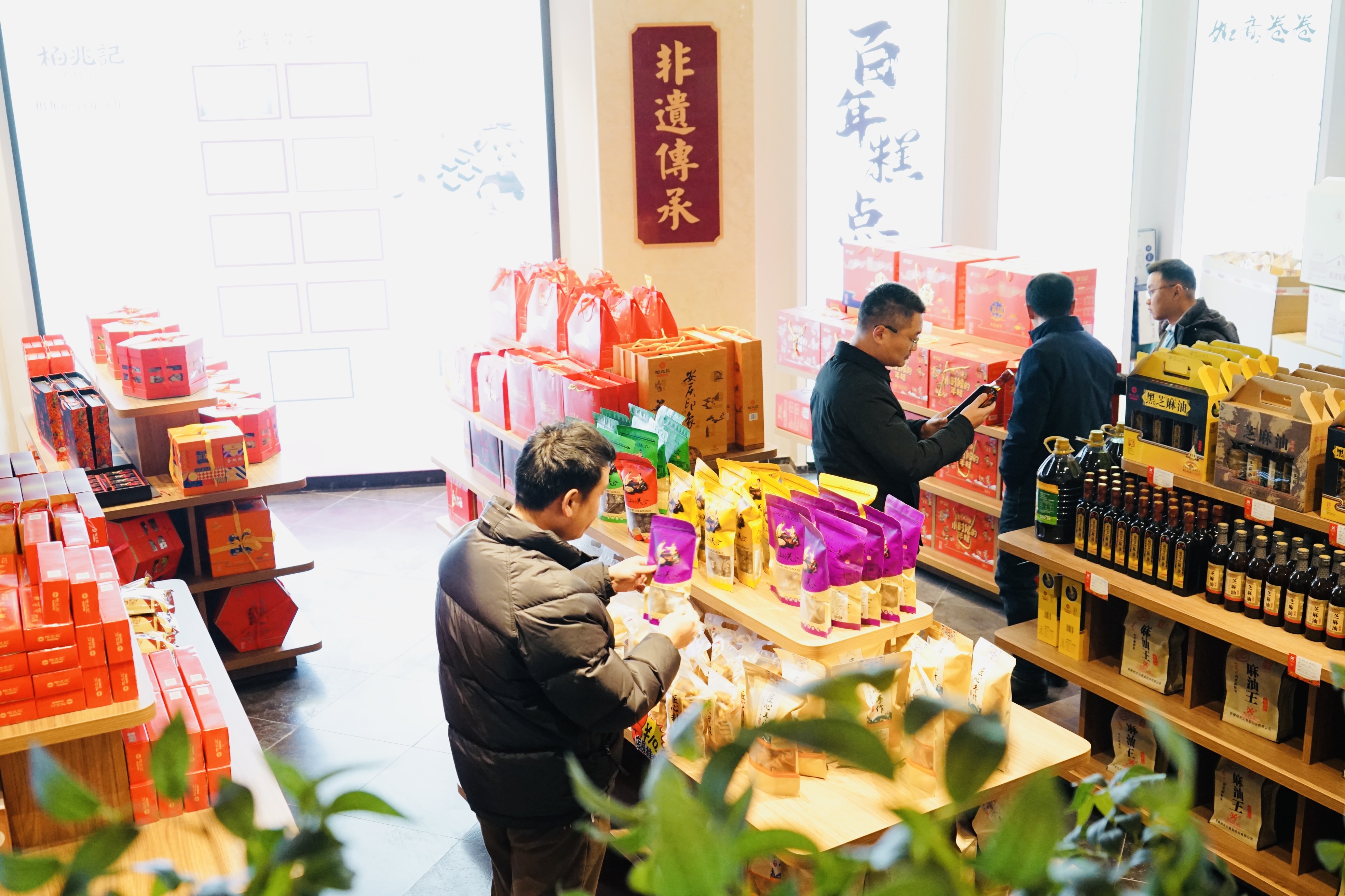 12月23日,市民在非遺手工食品店選購糕點。隨著蛇年腳步的臨近,千年古鎮(zhèn)石牌鎮(zhèn)彌漫著濃濃的過年氛圍,當?shù)厣a(chǎn)的各式各樣手工非遺糕點為年貨市場注入非遺文化,受到市民追捧。檀志揚 張翔 攝