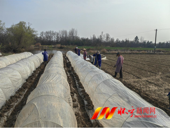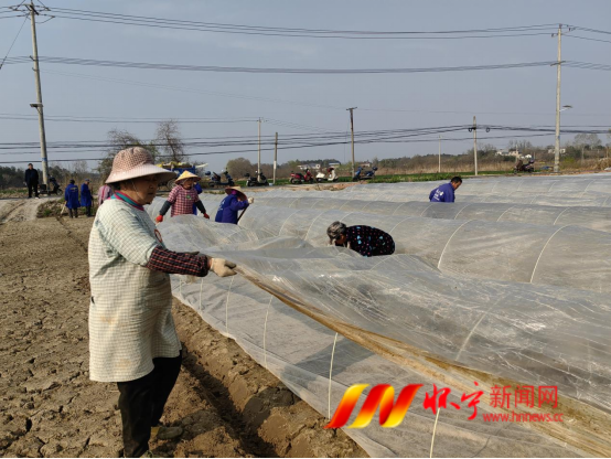 3月17日,在小市鎮毛安村大塥組的農田里,十幾名工人正在擺盤、蓋膜,進行地膜育秧。為給今年水稻生產打下良好基礎,縣沃谷農作物種植專業合作社負責人丁文華及早備耕,安排大棚和地膜育秧40余畝,可供應農場本身和周邊農戶3000多畝水田機插秧苗,預計秧盤25天后即可移栽到大田實施機插。范星華 攝